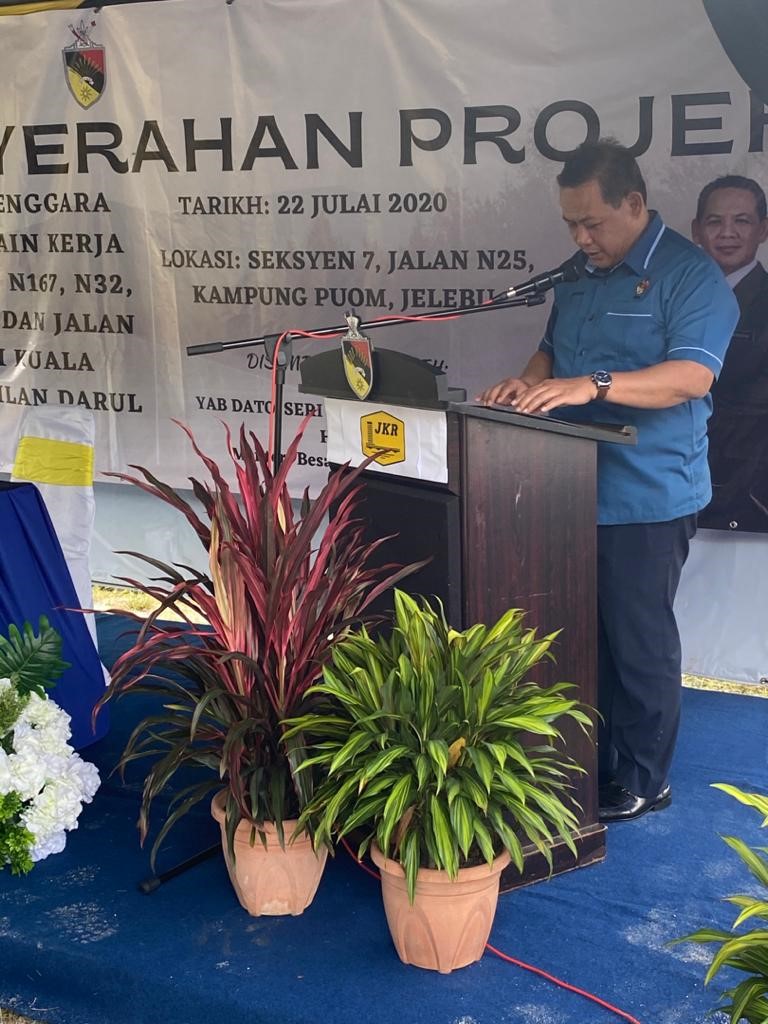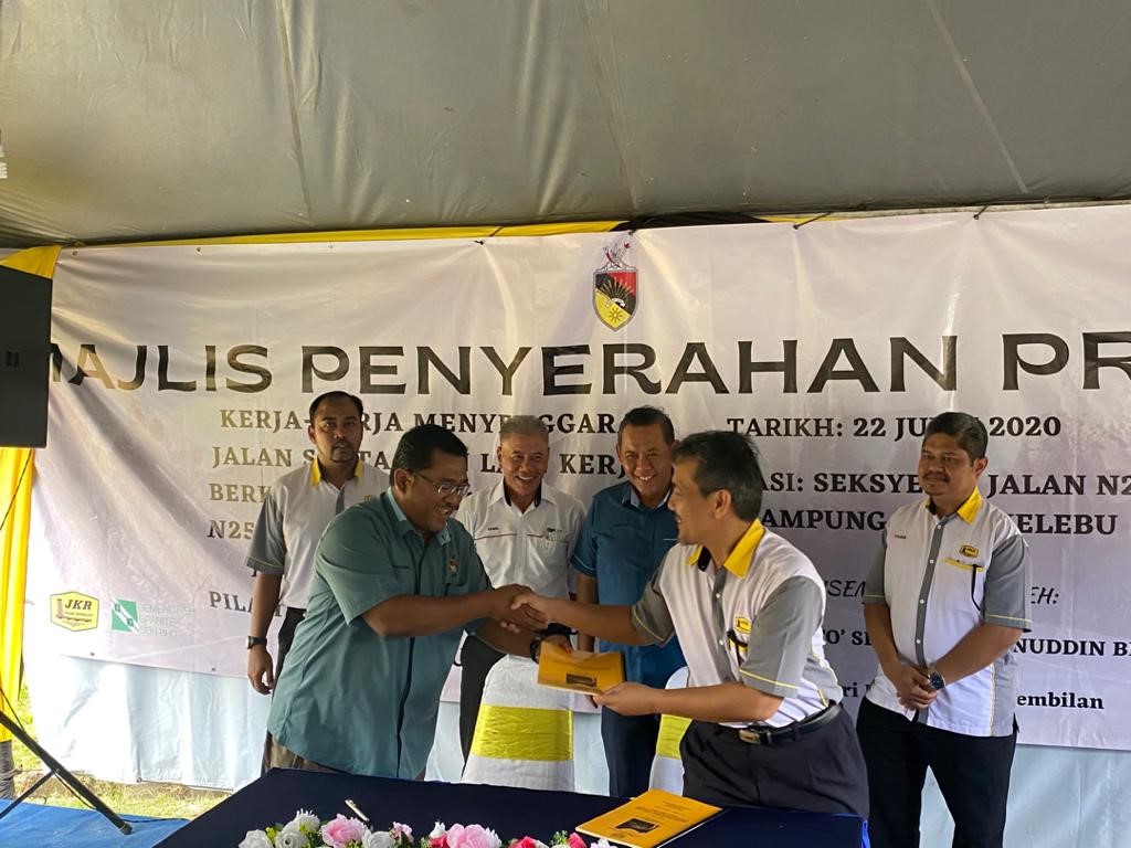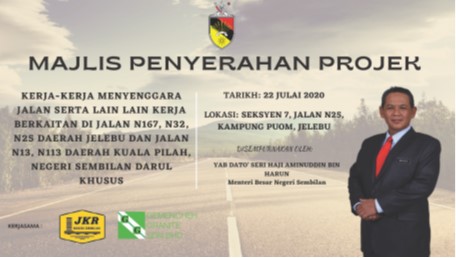 Majlis penyerahan projek kerja-kerja menyelenggara jalan serta lain-lain kerja berkaitan di Jalan N167, N32, N25 daerah Jelebu dan Jalan N13, N113 daerah Kuala Pilah, Negeri Sembilan Darul Khusus yang disempurnakan oleh YAB Dato' Seri Haji Aminuddin Bin Harun, Menteri Besar Negeri Sembilan.